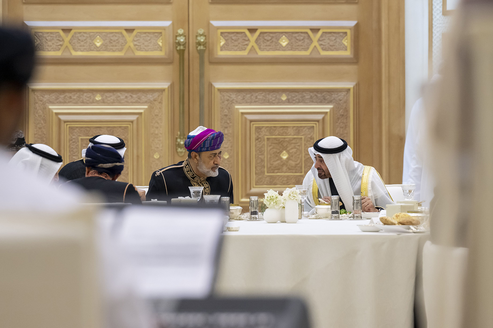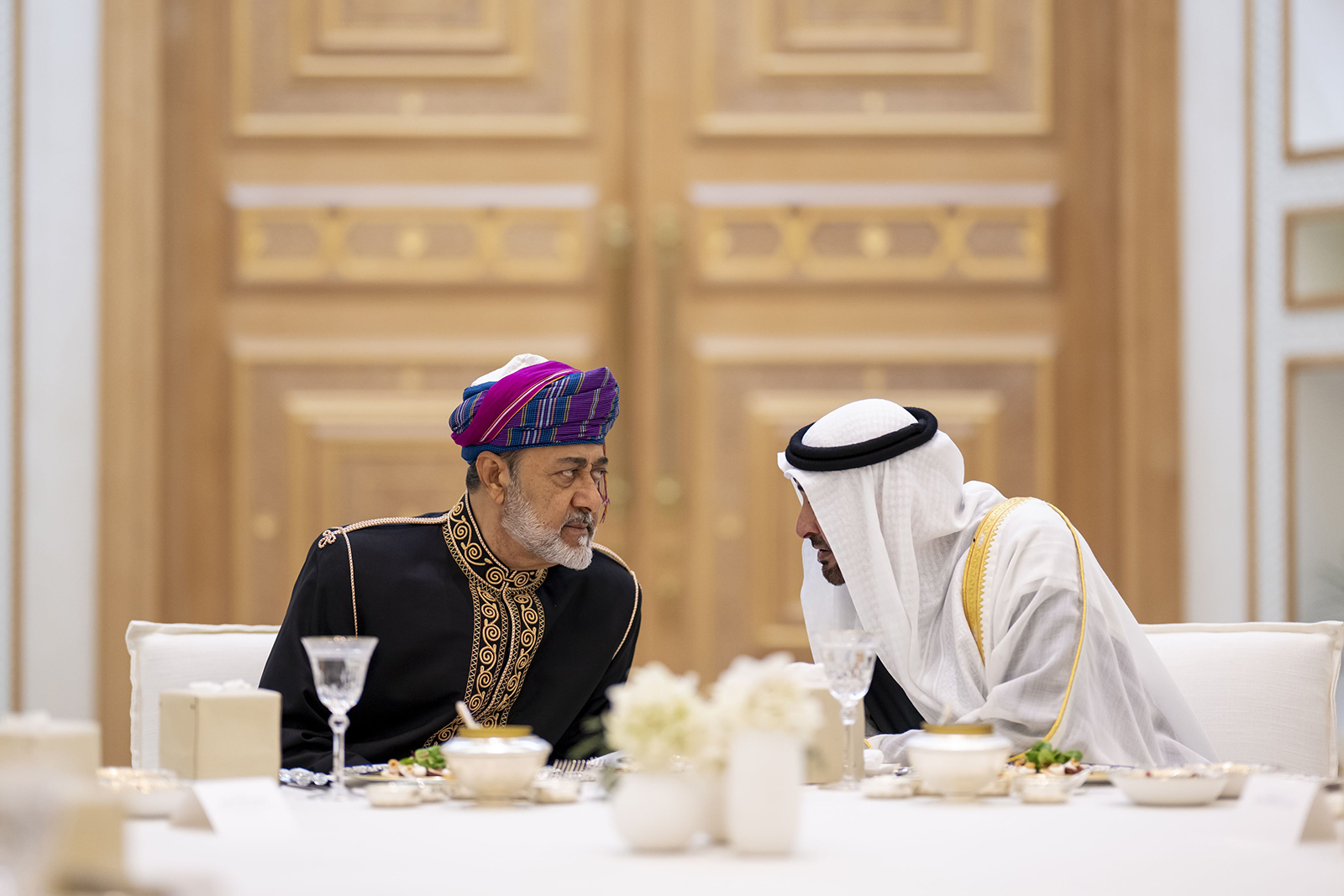 أقام صاحب السمو الشيخ محمد بن زايد آل نهيان رئيس الدولة “حفظه الله” اليوم ــ في قصر الوطن في أبوظبي ــ مأدبة عشاء تكريماً لأخيه صاحب الجلالة السلطان هيثم بن طارق سلطان عمان الشقيقة .. وذلك في إطار زيارة دولة التي يقوم بها جلالته إلى دولة الإمارات العربية المتحدة.