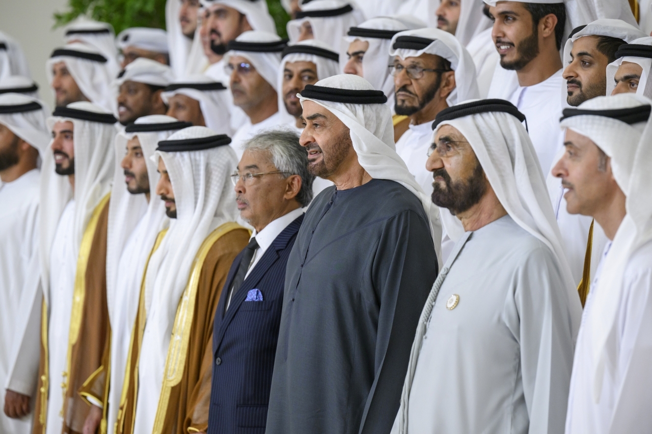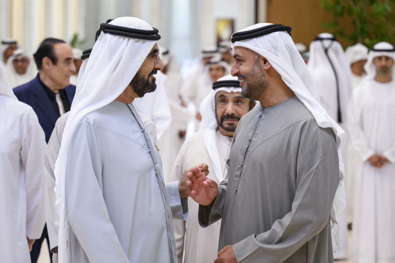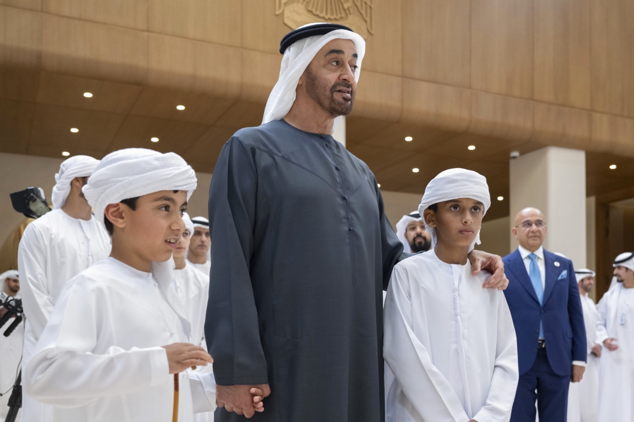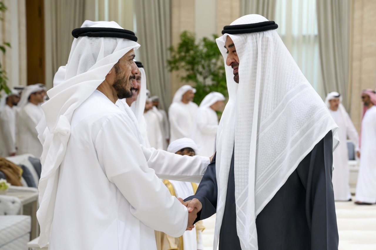 حضر صاحب السمو الشيخ محمد بن زايد آل نهيان، رئيس الدولة، حفظه الله، وصاحب السمو الشيخ محمد بن راشد آل مكتوم، نائب رئيس الدولة رئيس مجلس الوزراء حاكم دبي، رعاه الله، أمس، أفراح آل نهيان في قصر المشرف ضمن العرس الجماعي الذي أقيم على مستوى الدولة لعدد من أبناء الوطن برعاية ديوان الرئاسة.