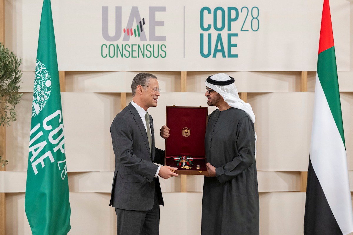 منح صاحب السمو الشيخ محمد بن زايد آل نهيان رئيس الدولة "حفظه الله".. عدداً من المسؤولين الدوليين "وسام زايد الثاني" من الطبقة الأولى تقديراً لإسهاماتهم في إنجاح مؤتمر الأطراف في اتفاقية الأمم المتحدة بشأن تغير المناخ "COP28" الذي استضافته دولة الإمارات أواخر العام الماضي.