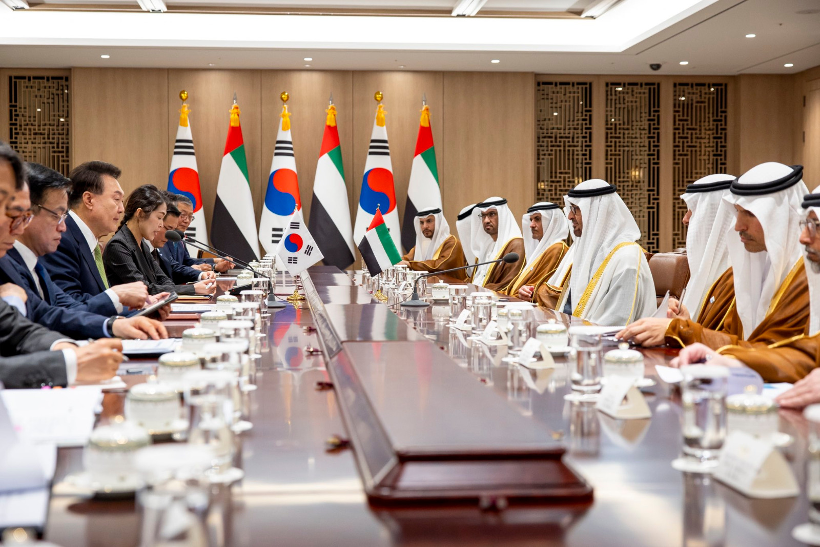 أعرب صاحب السمو الشيخ محمد بن زايد آل نهيان، رئيس الدولة، حفظه الله، عن سعادته بلقاء الرئيس يون سيوك يول في سيئول اليوم، مؤكداً سموه أن اتفاقية الشراكة الاقتصادية الشاملة بين الإمارات وكوريا تجسد نهج الإمارات في بناء الشراكات التنموية الفاعلة التي تحقق مصلحة الجميع في التقدم والازدهار.