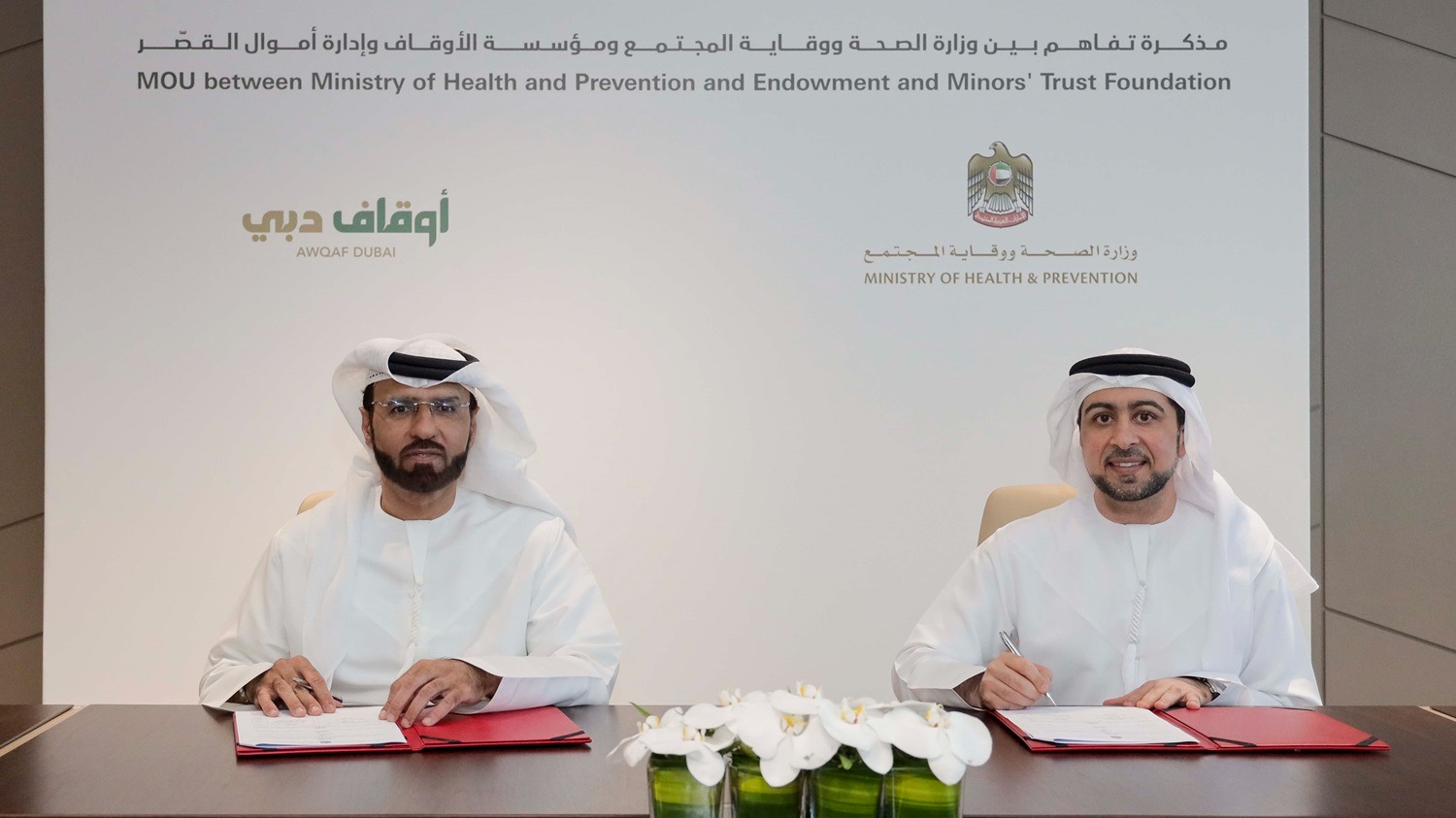 وجاء توقيع مذكرة تفاهم بمقر الوزارة بدبي، بحضور سعادة عبد الله أحمد أهلي الوكيل المساعد لقطاع الخدمات المساندة في وزارة الصحة ووقاية المجتمع، وسعادة علي محمد المطوع أمين عام مؤسسة الأوقاف وإدارة أموال القصّر في دبي (أوقاف دبي)، وعدد من كبار الموظفين لدى الطرفين.