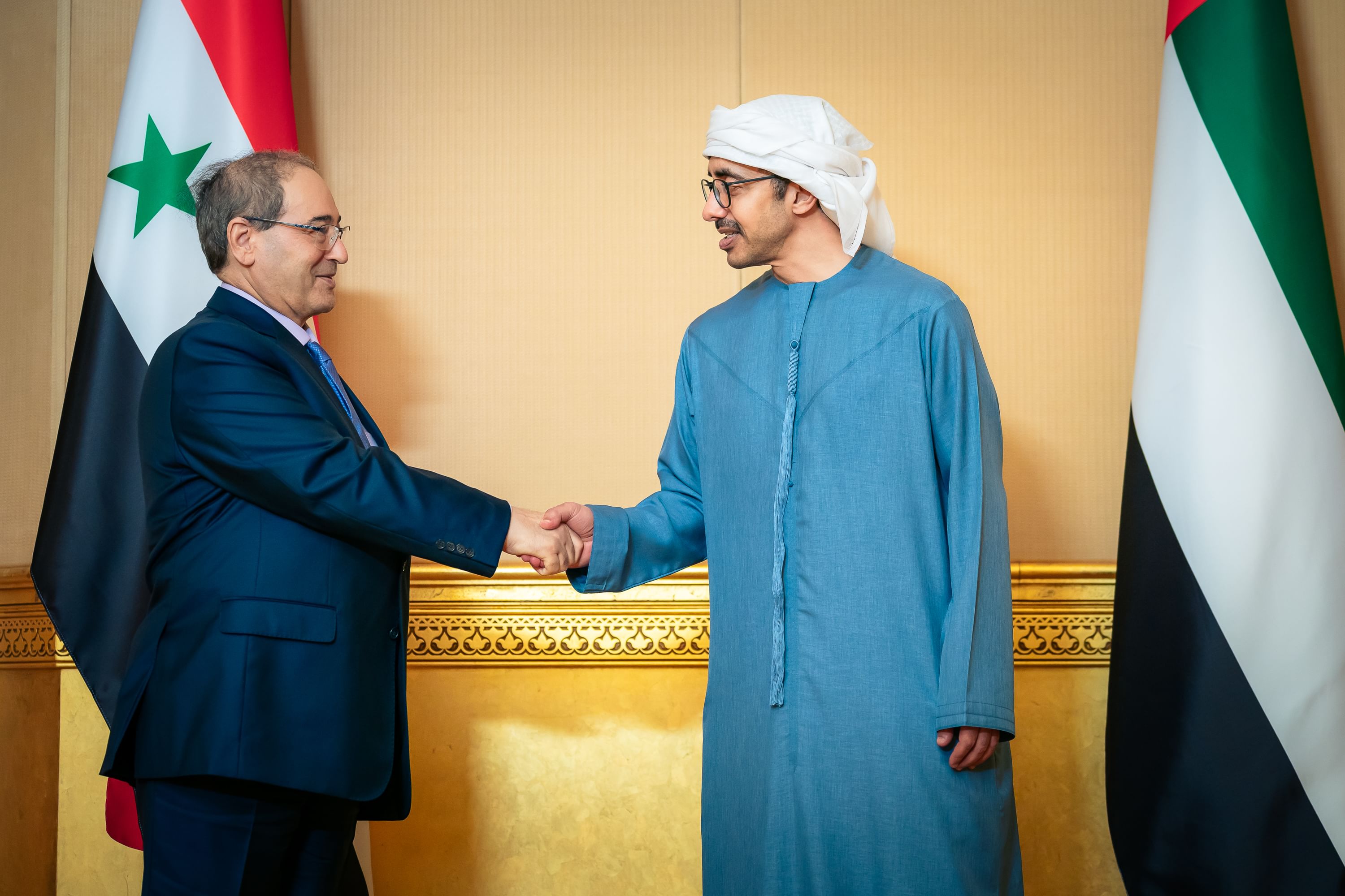 استقبل سمو الشيخ عبدالله بن زايد آل نهيان وزير الخارجية، أمس على عشاء عمل في أبوظبي، معالي الدكتور فيصل المقداد وزير الخارجية والمغتربين في الجمهورية العربية السورية الشقيقة.