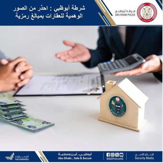 حذرت شرطة أبوظبي الجمهور من تجدد أساليب النصب والاحتيال واستدراج الضحايا بطرق مضلله يتم بموجبها الاحتيال عليهم من خلال عرض صور عقارات وهمية بمبالغ رمزية في وسائل التواصل الاجتماعي حيث يقوم الضحية بوضع عربون للعقار ثم يكتشف بانه وقع ضحية نصب واحتيال .