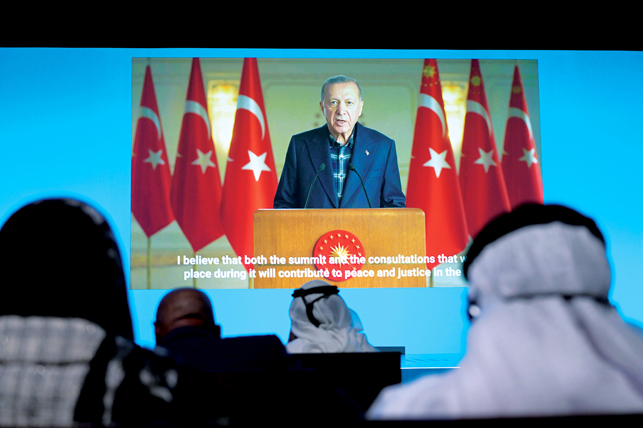 وقال: «آمل أن تجلب القمة العالمية للحكومات الخير لنا ولمنطقتنا وللإنسانية جمعاء، كنتُ قد خطّطتُ كي أكون حاضراً معكم شخصياً، لكن بسبب الأحداث الأخيرة وتبعات الزلزال الذي ضرب بلادنا في 6 فبراير لم أتمكن من الحضور.. وقد شمل الزلزال الذي بدأ في كهرمان مرعش، منطقة مساحتها 500 كيلومتر فيها 10 أقاليم، يعيش فيها 13.5 مليون شخص، متسبباً للأسف، بدمار شامل».