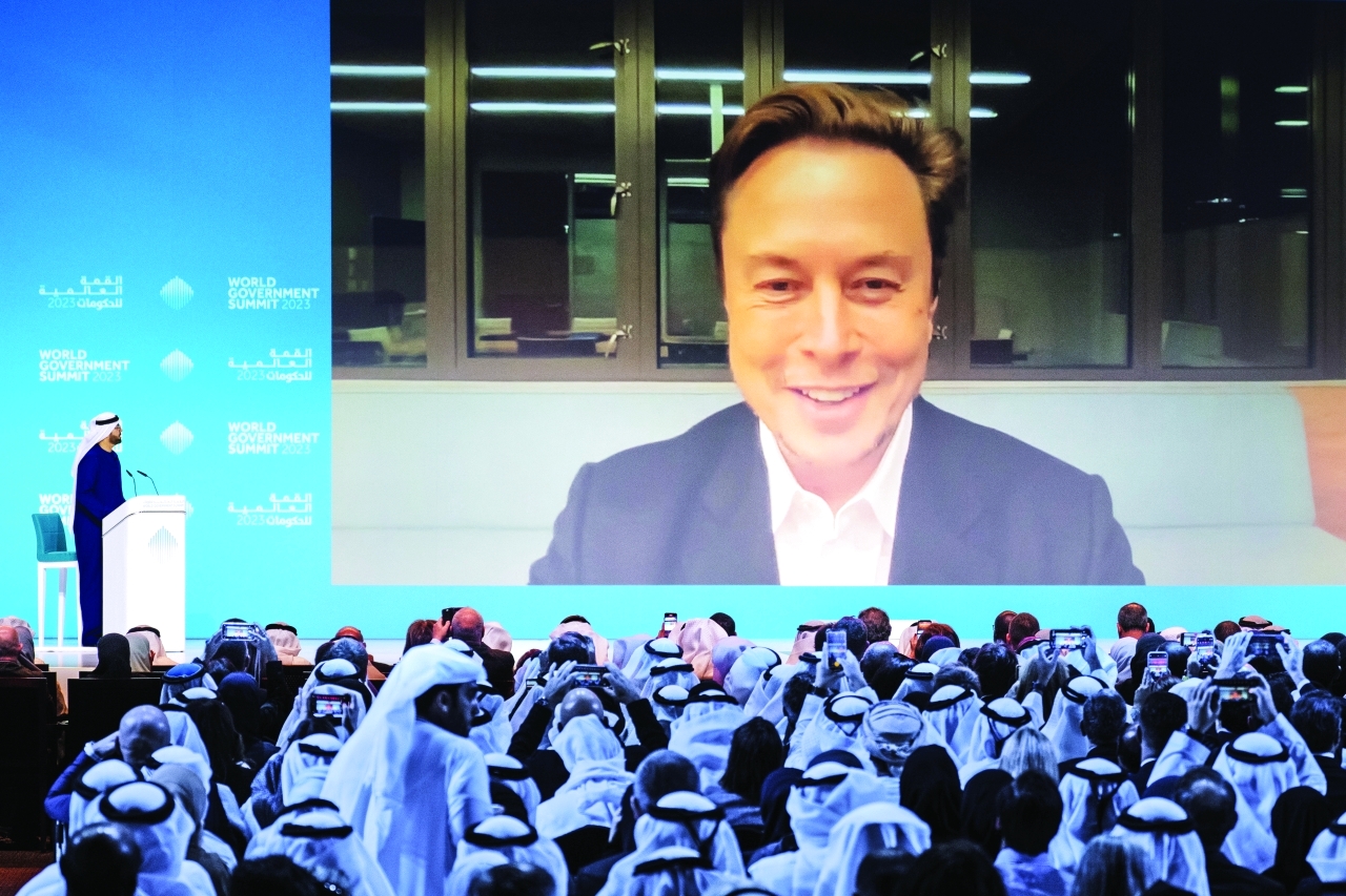حاور معالي محمد عبد الله القرقاوي وزير شؤون مجلس الوزراء رئيس القمة العالمية للحكومات، إيلون ماسك الرئيس التنفيذي لشركات «سبيس إكس» و«تيسلا» و«تويتر»، حول العديد من الموضوعات المرتبطة بالتغيرات العالمية والتطور التكنولوجي السريع وتأثيره في البشرية.
