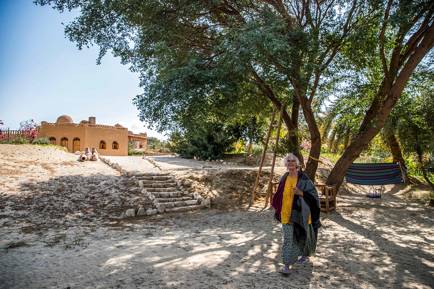في حديقة منزلها، قالت فريدل مدربة التأمل التي تبلغ من العمر 72 عاما لوكالة فرانس برس "لقد جئت إلى هنا قبل 35 عاما، حينها لم يكن هناك طريق" يوصل إلى منطقة بئر الجبل التي تبعد نحو 700 كلم جنوب غرب القاهرة.