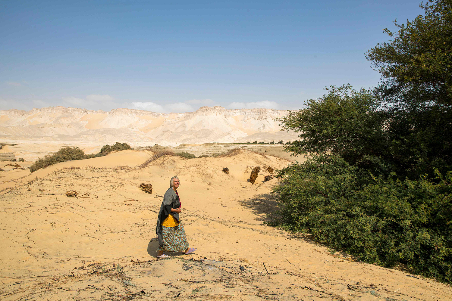 وقالت المرأة التي غطى الشيب شعرها، "لقد وقعت في حب هذا المكان .. هنا ترسم الطبيعة فنا وطبقات الجبال تحمل آلاف السنين هل ترى هذا الجمال"، مشيرة إلى صحراء الوادي، المحافظة المصرية التي تزيد مساحتها عن مساحة ألمانيا بأكثر من ثمانين ألف كلم مربع.