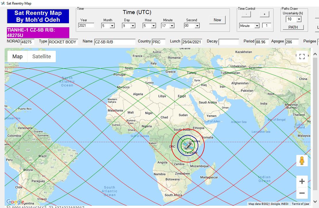 وقال المهندس محمد شوكت عودة المشرف على برنامج متابعة سقوط الأقمار الصناعية بمركز الفلك الدولي في أبو ظبي أن الصاروخ الفضائي(Long March 5) من طــــراز (CZ-5B) تم اطلاقه يوم 29 أبريل 2021، حاملا معه القطعة الرئيسية لمحطة الفضاء الصينية (Tianhe)،