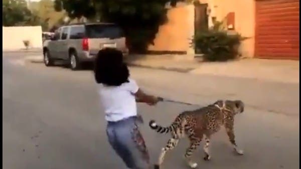 وتداول رواد مواقع التواصل الاجتماعي "تويتر" مقطع فيديو لطفلة تصطحب حيوانا مفترسا بأحد شوارع السعودية، ورصد الفيديو نفسه، حيوان "الفهد" مربوطاً بحبل داخل سيارة متوقفة في أحد الشوارع، ثم أنزلت الطفلة الحيوان من السيارة، وسحبت الحبل بقوة للسيطرة عليه.