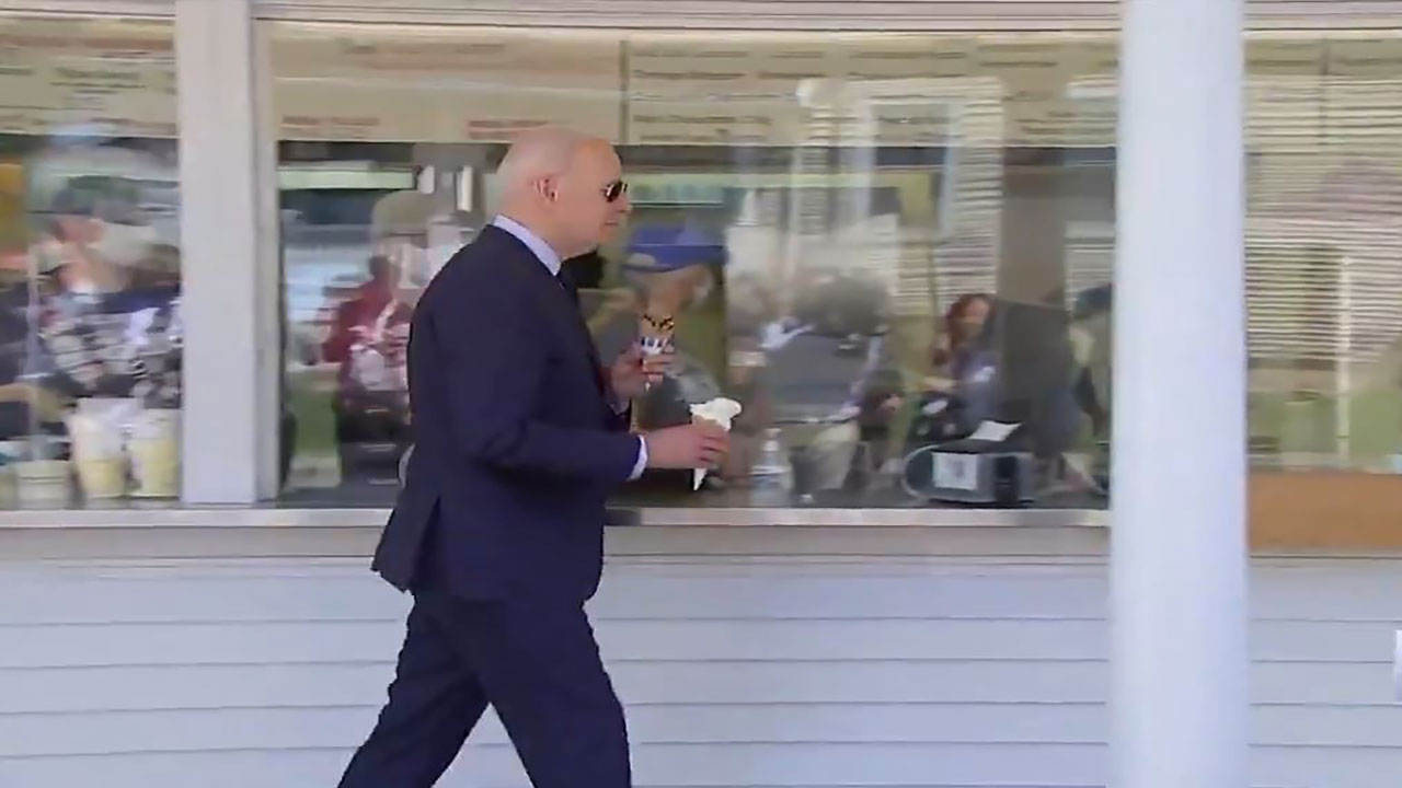 توقف الرئيس الأمريكي جو بايدن بشكل مفاجئ لشراء آيس كريم في أحد متاجر المثلجات خلال جولته بمدينة كليفلاند في ولاية أوهايو يوم الخميس.