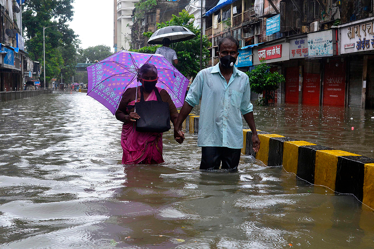 غمرت مياه الأمطار الموسمية الطرق والأسواق، كما تعطلت حركة بعض الحافلات والقطارات المحلية اليوم الأربعاء، وذلك بعد هطول الأمطار السنوية على مدينة مومباي، المركز المالي للهند، التي تعاني بالفعل من جائحة كورونا.