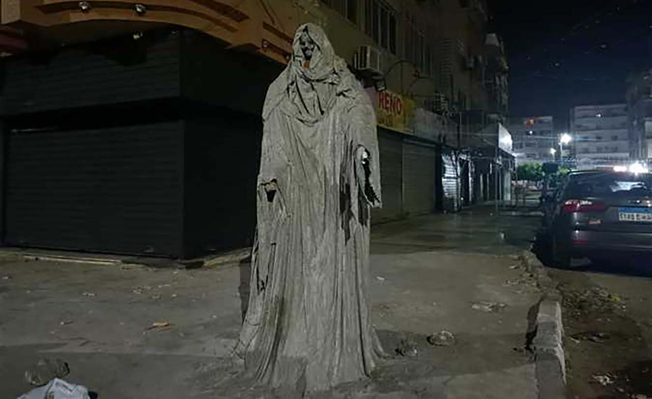 وتفاجأ المواطنون، بتمثال لشبح شهير في شارع متفرع من شارع شبين على بعد أمتار من ديوان عام محافظة الإسماعيلية، وفقا لصحيفة الوطن.