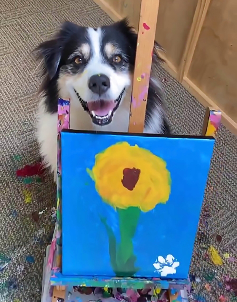 وبتصميم عنيد، أصبحت الكلبة من نوع كلب الراعي الأسترالي، تصنع روائع من الفن الحديث، حيث انتشرت لوحتها المائية للزهرة الصفراء بشكل واسع على مواقع التواصل، حاصدة 16 مليون مشاهدة، وفقاً لصحيفة «ذا صن» البريطانية.