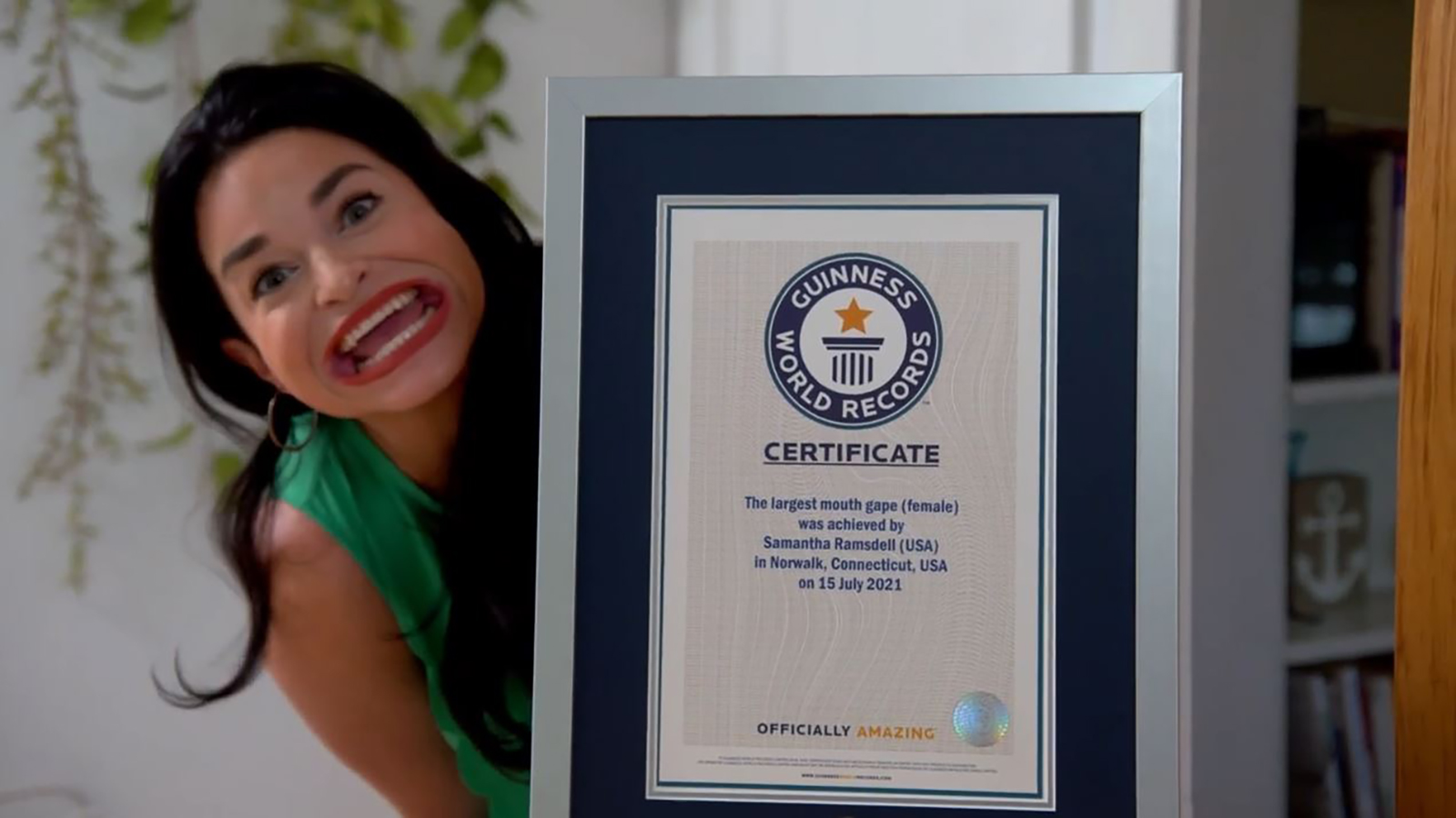 وقالت سامانثا رامسديل إنها عرفت دائما أن فمها كبير، لكنها لم تلحظ هذا حتى أشار مشتركو "تيك توك" إلى أنه قد يكون لديها فما بحجم قياسي، الأمر الذي شجعها على التسجيل في موسوعة "غينيس".