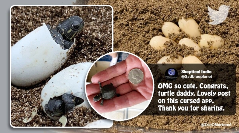 ووفقاً لمجلة «نيوزويك» الأمريكية، كان إيريك مارتنز، قد صادف السلحفاة على الطريق أثناء عودته من العمل، فخرج لمساعدتها، وبعد أن أدرك أنها نفقت، حاول إنقاذ صغارها.