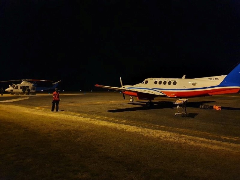وقالت هيئة الإسعاف الطائر الملكية على تويتر إنها نقلت الرجلين جوا إلى مستشفى في كيرنز وذكرت وسائل الإعلام أن كليهما في حالة مستقرة.