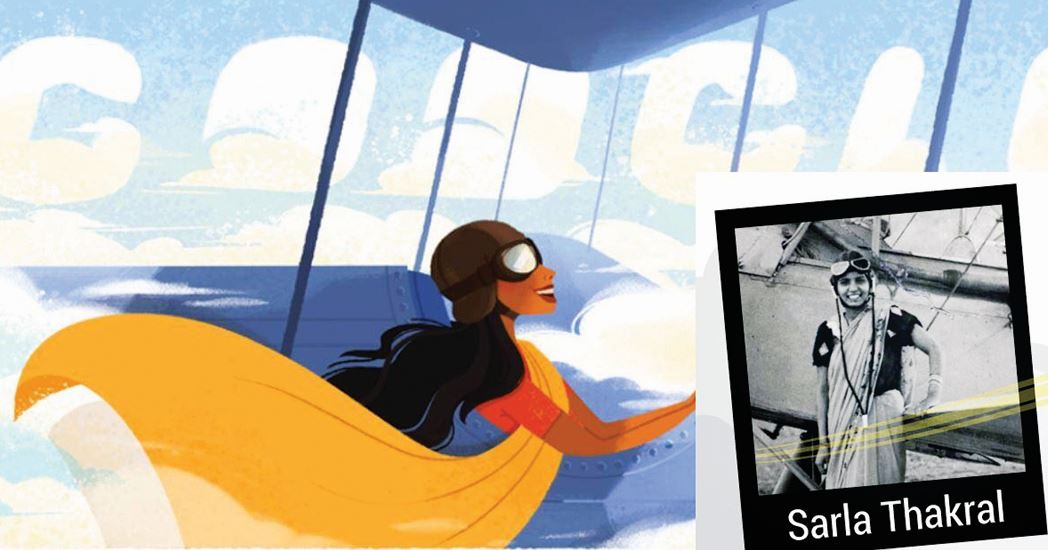 احتفت شركة "غوغل"، في الثامن من أغسطس، بالذكرى ال107 لميلاد الهندية، سارلا ثاكرال، أول امرأة هندية تقود طائرة، وذلك عن طريق رسم توضيحي خاص احتل شعار الصفحة الرئيسية لمحرك البحث.