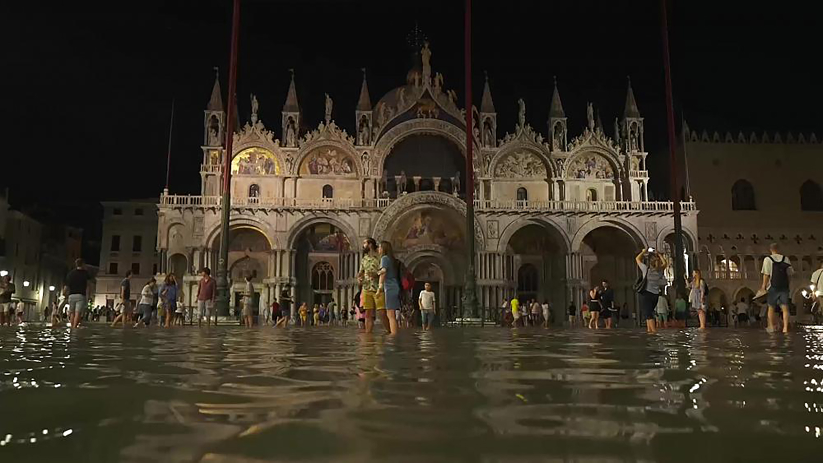 غمرت مياه فيضانات صيفية غير معتادة ساحة القديس مرقس الشهيرة في مدينة البندقية الإيطالية ووصل منسوبها خلال الليل إلى ما يصل لمتر.
