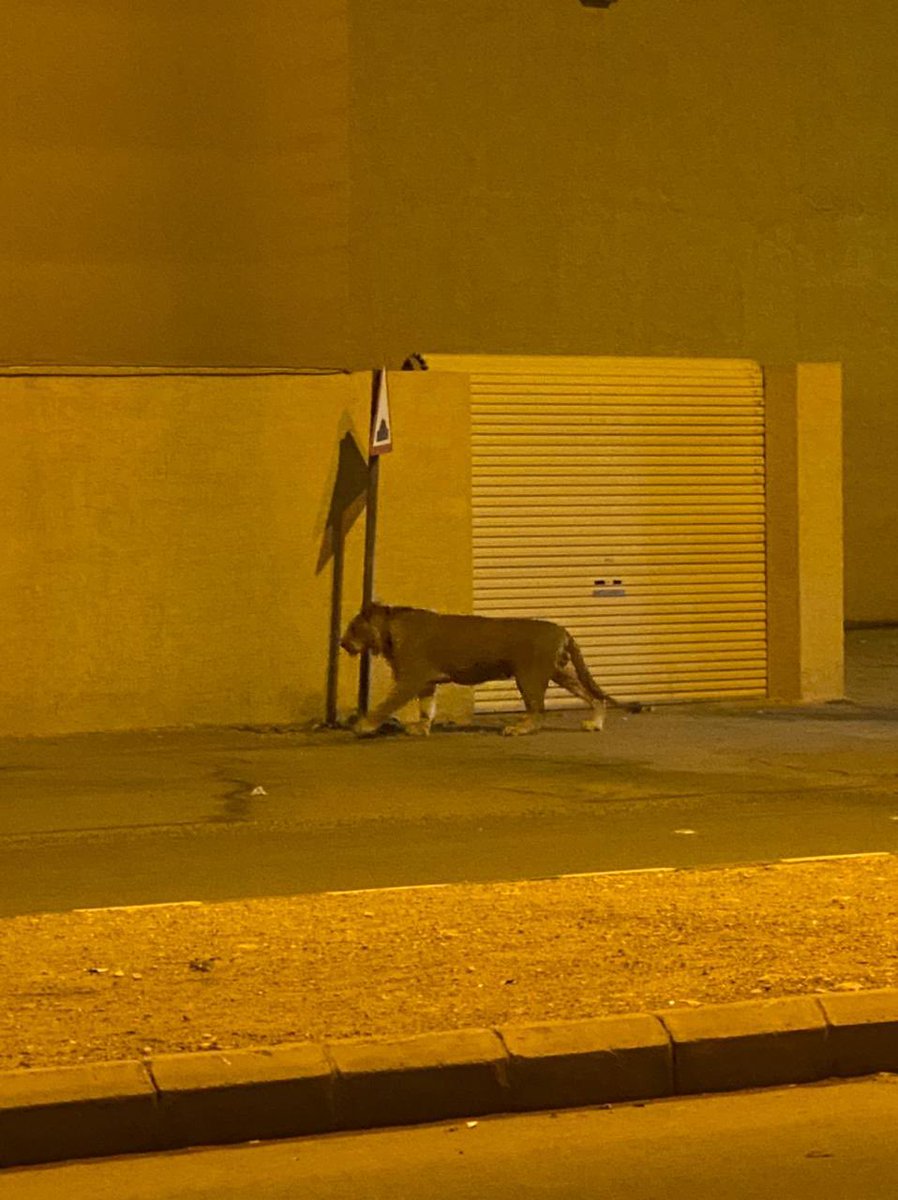 أعلنت السلطات السعودية، أمس الخميس، أنها تلقت بلاغا ورد للمركز الوطني للعمليات الأمنية (911) عن وجود أحد الحيوانات المفترسة (أسد)، مقيدا بعمود في حي سكني بمدينة الرياض.