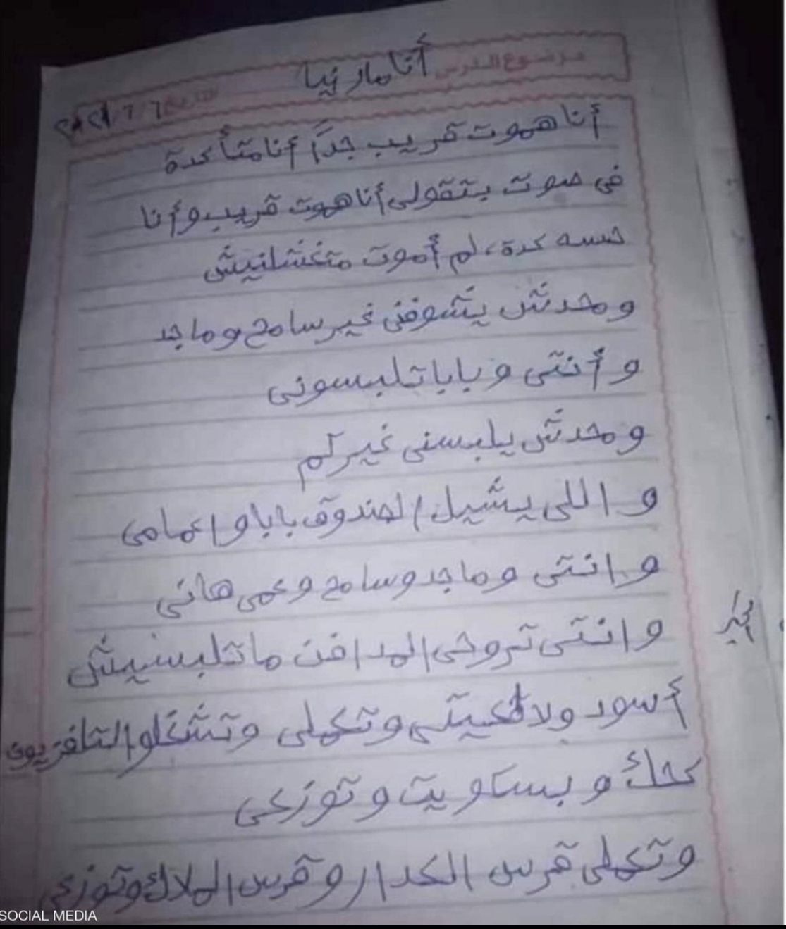 فارقت طفلة مصرية الحياة بعد أن تركت رسالة مؤثرة زادت من عصر قلوب أحبائها على فراقها.