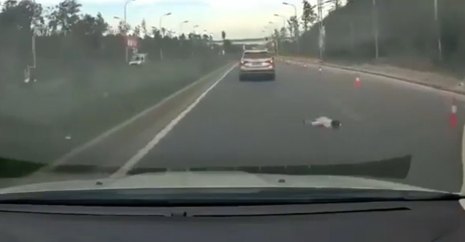 أظهر مقطع فيديو متداول سقوط رضيع صغير على طريق سريع في الصين من نافذة سيارة بسبب إهمال والدته تركها مفتوحة.