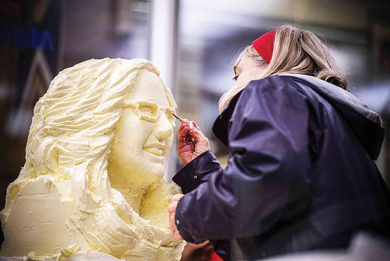 نصف قرن أمضتها النحاتة ليندا كريستنسن البالغة اليوم 79 عاماً من العمر في نحت الوجوه على كتل ضخمة من الزبدة، حيث تسلم مايكل أنجلو مينيسوتا العدّة إلى جيري كولزر ليمضي في رحلة نحت ملكة الحليب، أميرة درب التبانة كاي وقد أنجزت منها 500 على امتداد رحلتها الفنية الممتدة لما يزيد على خمسة عقود من الزمن. وحوّلت آخر كتلة من لزبدة تزن 90 رطلاً إلى تحفة كريمية الشهر الماضي على من قلب الاستديو الزجاجي الخاص بها.
