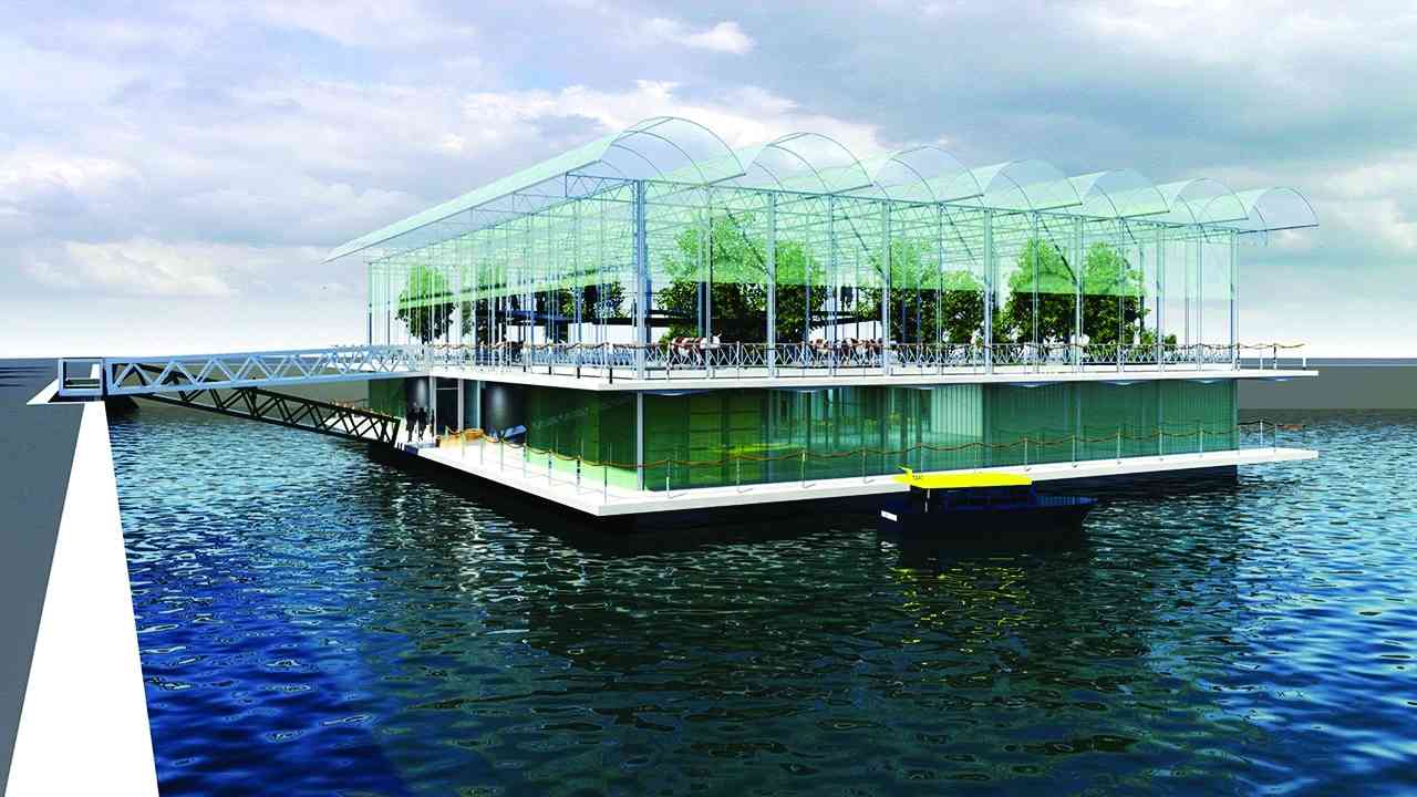 مشهدٌ سريالي في ميناء روتردام بهولندا، وهو عبارة عن مزرعة عائمة تتألف من 3 طبقات تضم قطيع أبقار وتمثّل «مستقبل تربية الحيوانات» في هولندا المكتظّة سكّانياً.