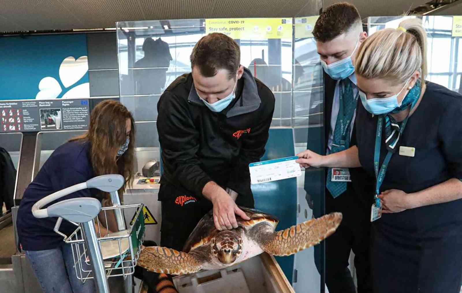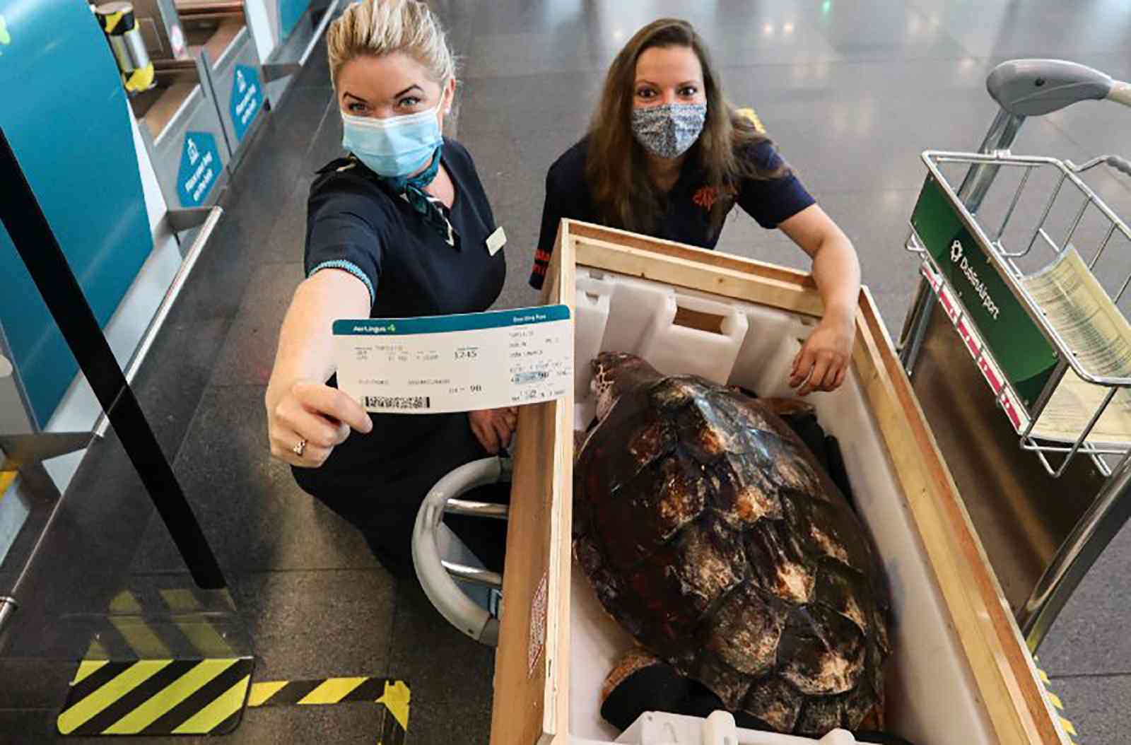 ولفت موقع "غود نيوز نتوورك" إلى أن السلحفاة البحرية الضخمة والبالغ عمرها ثلاثة أعوام عثر عليها على شاطئ مقاطعة دونيغال في إيرلندا لكنها استقلت الطائرة متوجهة لمياه أكثر دفئاً.