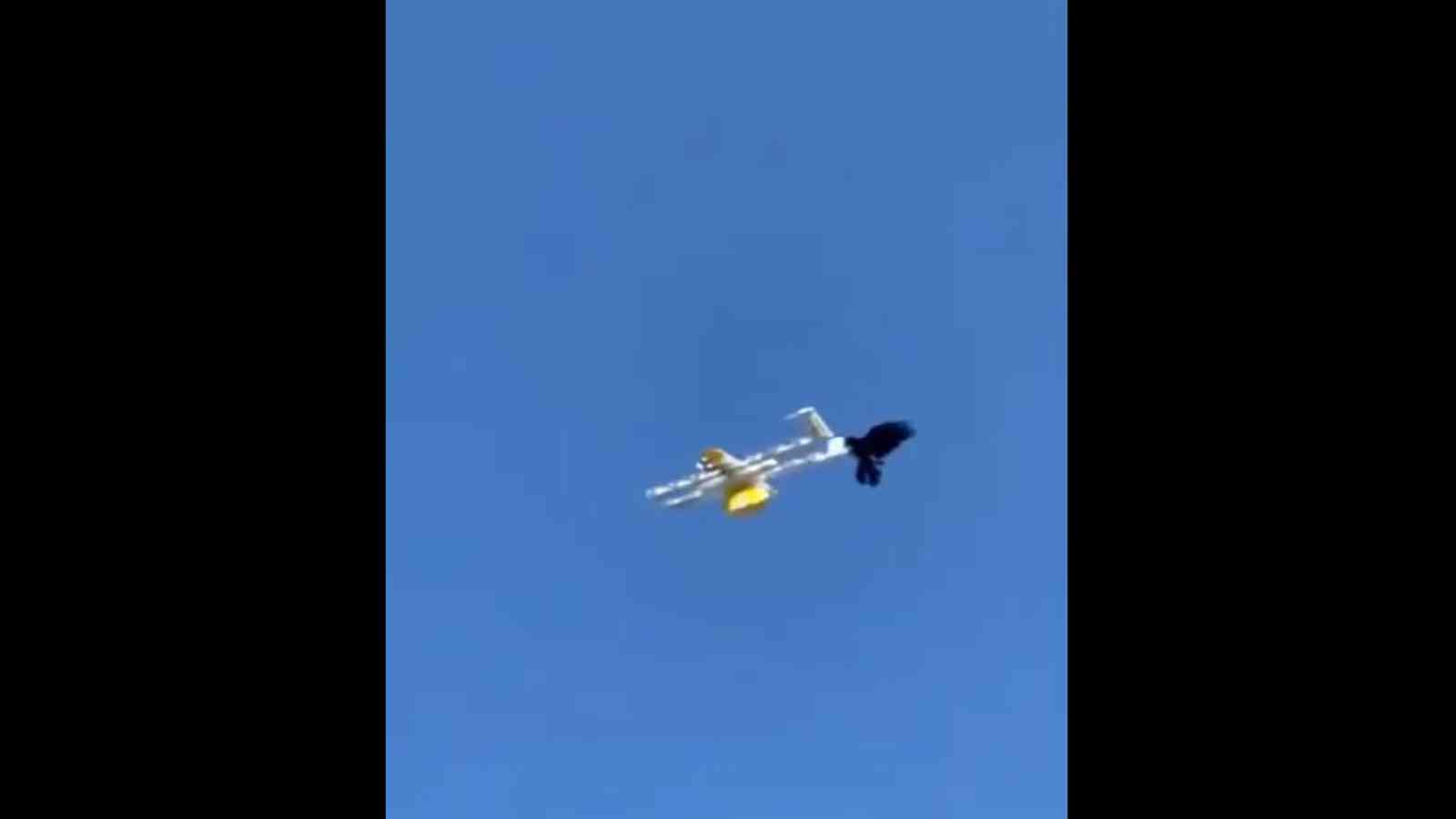 وقال ناشرو الفيديو إن الفيديو تم التقاطه في أستراليا، ويظهر فيه طائرة من دون طيار (درون) تحلق في الهواء حاملة حقيبة بلاستيكية، قبل أن يباغتها غراب ليعترض تقدمها.