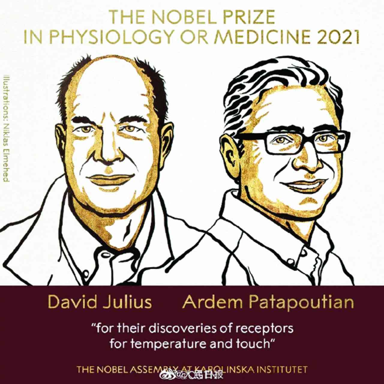 أعلنت الهيئة المانحة لجائزة نوبل، فوز العالمين الأمريكيين ديفيد جوليوس، وأردم باتابوتيان (المتحدر من أصل لبناني)، بجائزة نوبل للطب لعام 2021، تقديراً لاكتشافاتهما على صعيد مستقبلات الحرارة واللمس، بحسب ما أعلنت اللجنة المسؤولة عن الجائزة المرموقة في ستوكهولم أمس.