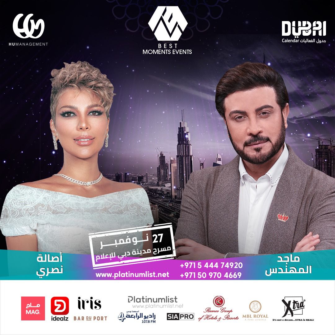 وتختتم الحفلات بظهور غنائي مزدوج يجمع النجمة أصالة نصري مع الفنان ماجد المهندس، في سهرة آسرة مساء السبت 27 نوفمبر المقبل.