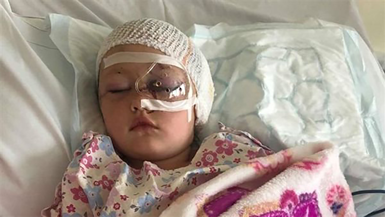 تغفو وتصحو الطفلة الصغيرة بعين واحدة وذكرى هجوم الكلب الشرس عليها لا تنتهي، فقد تركها بـ عين مثقوبة وفروة رأس متآكلة، تلك الحادثة البشعة لا يمكن للصغيرة أن تمحوها من ذكراها مهما مرت السنين.