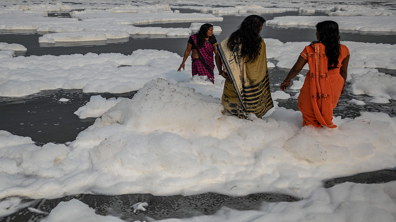 غطت أكوام من الرغوة البيضاء السامة مياه نهر يامونا في عاصمة الهند نيودلهي، حسب موقع "فرانس 24" الإخباري.