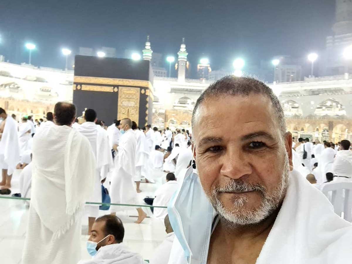 شارك الحاج المصري إسماعيل عبد اللطيف (64 عاما) فرحته بأداء العمرة مع أصدقائه بعد أن قطع أكثر من 3000 كيلومتر على دراجته النارية منطلقاً من القاهرة إلى مكة المكرمة.