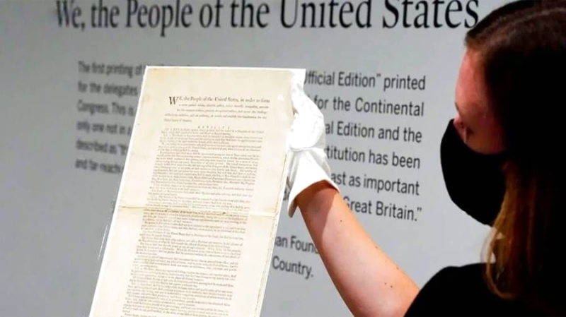 بيعت أول من أمس نسخة نادرة من الدستور الأمريكي لقاء 41 مليون دولار في دار سوذبيز للمزادات، وهو مبلغ فاق كثيراً تقدير الدار لقيمة الوثيقة قبل المزاد، والذي تراوح من 15 إلى 20 مليون دولار.