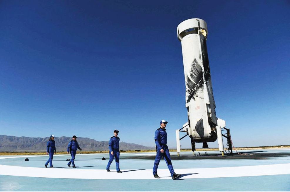 في 20 يوليو 2021، كان مؤسس أمازون، جيف بيزوس، ضمن الطاقم التاريخي على متن لأول رحلة ماهولة لشركة "بلو اوريجون" جنبا إلى جنب مع شقيقه مارك بيزوس، بالإضافة الى الاكبر والاصغر سناً بين الرواد الذي توجهوا الى الفضاء، وهما رائدة الفضاء، والي فانك 82 عاماً وأوليفر دايمون 18 عاماً، ثم في ثاني مهمة ماهولة للشركة في أكتوبر 2021، حطم الممثل ويليام شاتنر 90 عاماً الرقم القياسي كاكبر شخص سناً ذهب إلى الفضاء على الإطلاق.