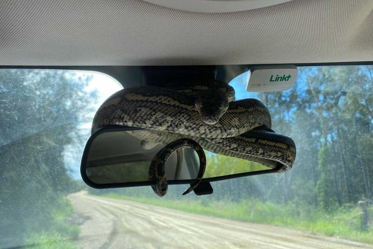 لم تتوقع عائلة أسترالية تركت سيارتها لتتنزه في كوينزلاند، أن تكون بانتظارهم مفاجئة مرعبة لدى عودتهم، حيث فوجئوا بثعبان عملاق، معلّق على مرآة السائق.