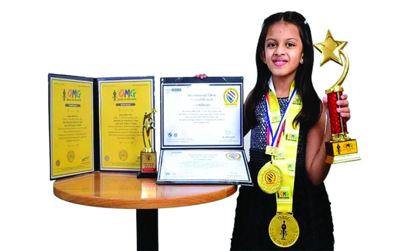 تمكنت فتاة هندية تبلغ من العمر 7 سنوات، وتقيم في دبي منذ خمس سنوات، من تحقيق رقمين عالميين في محاولة واحدة، من خلال قراءة 91 معلومة عن النظام الشمسي باللغتين الإنجليزية والعربية خلال حدث افتراضي مباشر تم بثه على «فيسبوك» و«يوتيوب» 15 نوفمبر الماضي. وذكر موقع «ذا ديلي غارديان» أن الفتاة واسمها، روتفا نيخيل بور، تمكنت من ذكر جميع الحقائق العلمية البالغ عددها 91، باللغة الإنجليزية في دقيقتين و46 ثانية، وباللغة العربية في 4 دقائق و39 ثانية، وأصبحت بذلك أول من يصنع «أرقاماً قياسية عالمية» في هذه الفئة الجديدة في العالم.