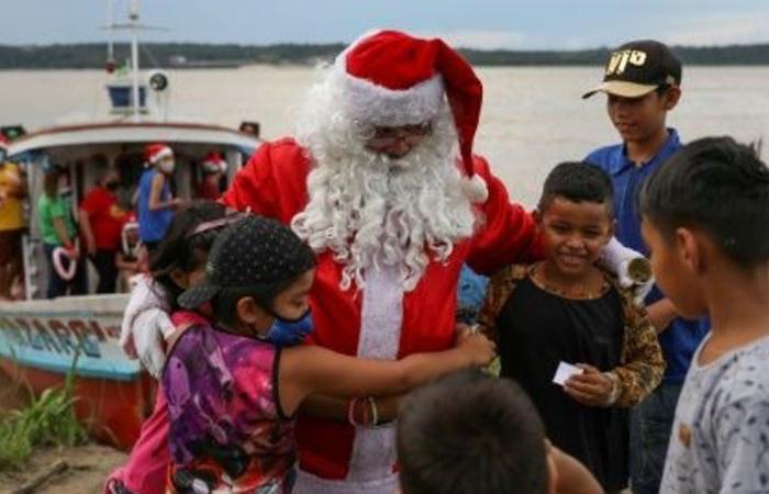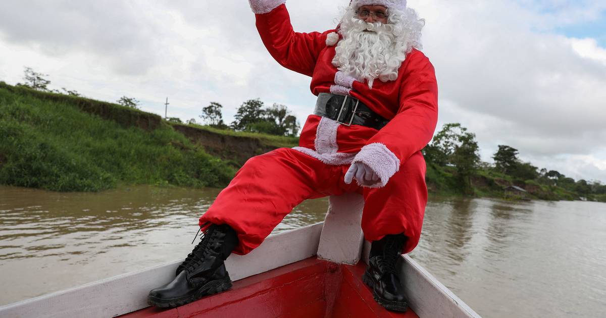 في قلب منطقة الأمازون البرازيلية، تخلى سانتا كلوز عن عربته التقليدية للجلوس في مقدمة قارب مزود بمحرك، حيث يرحّب بالأطفال الذين ينتظرونه بثبات على الشاطئ.