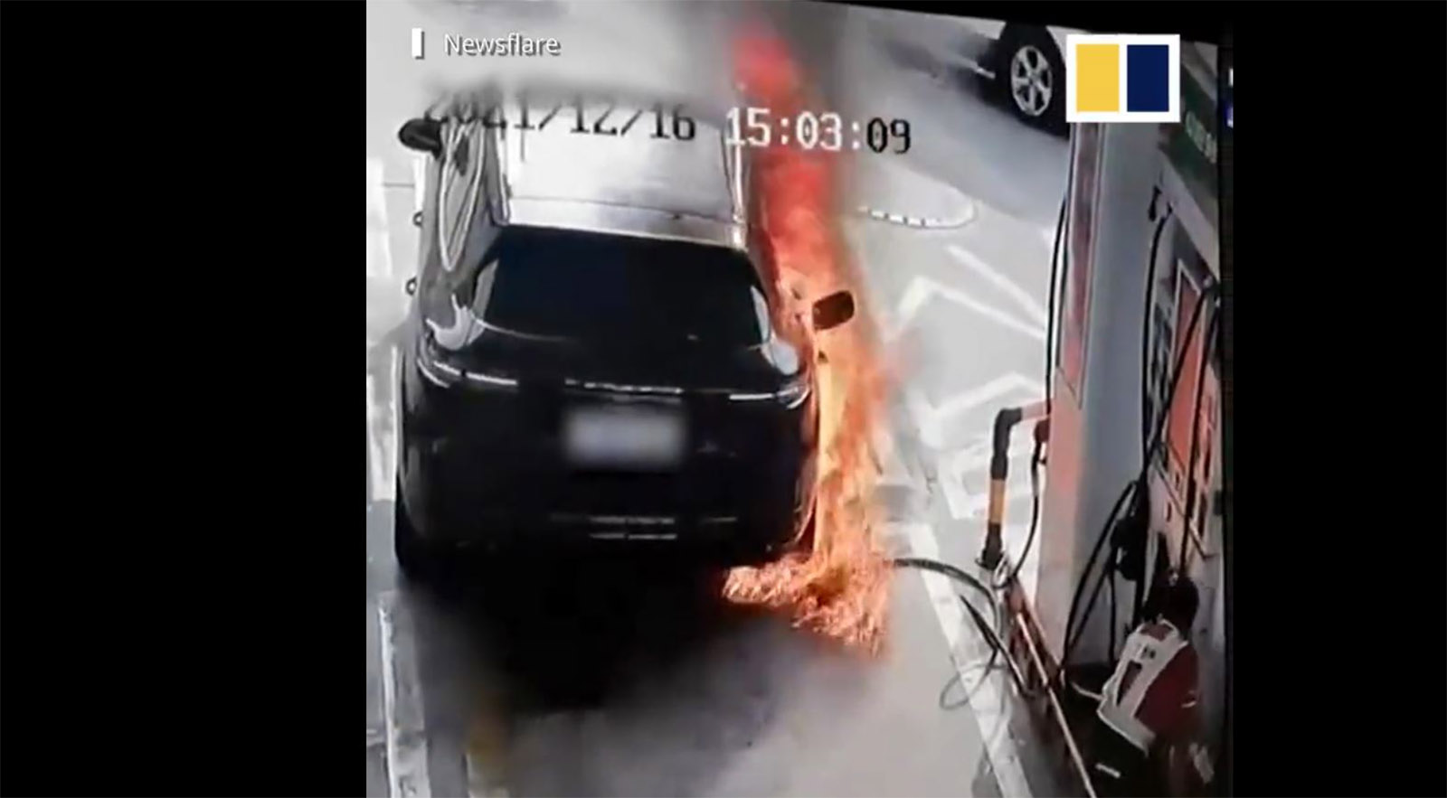 وأكدت الصحيفة أن المقطع يرصد لحظات مرعبة حدثت أثناء توقف سيارة بورش للتزود بالوقود، مشيرة إلى أن شخصا غريبا انتزع المضخة من خزان وقود السيارة وقام بإشعال النار أمام فوهة المضخة ثم فر هاربا.