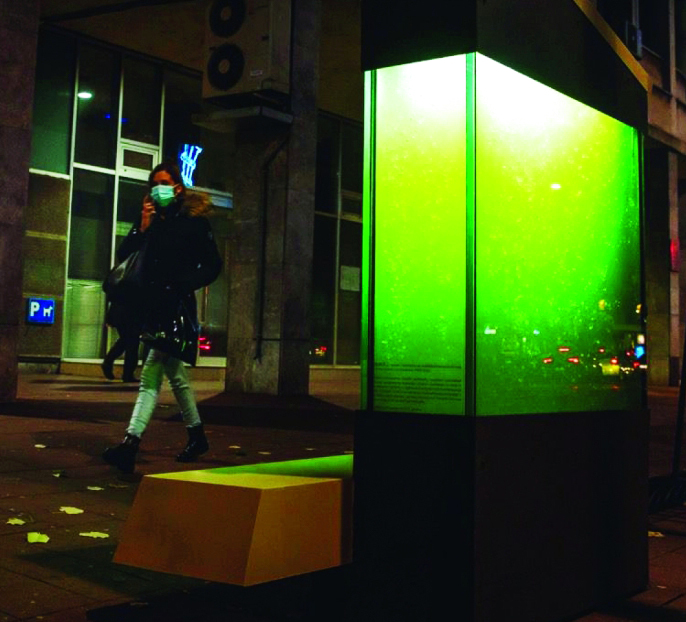 تنظف مجسمات ممتلئة بالسوائل، شوارع عاصمة صربيا من الهواء الملوث عن طريق التمثيل الضوئي. وتزود تلك «الأشجار السائلة»، وهي عبارة عن مفاعلات حيوية مصنوعة من الطحالب الدقيقة الممزوجة بالماء، مجتمع المدينة بالفوائد التي تقدمها الأشجار والمساحات الخضراء.