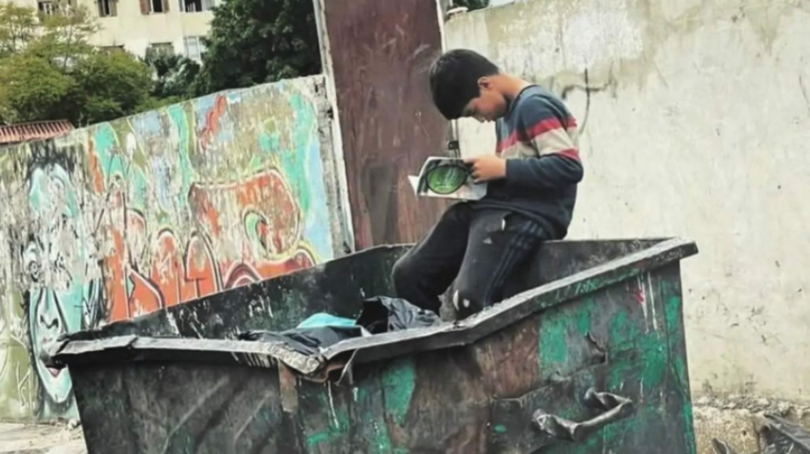 القراءة غذاء العقل.. هذه المقولة طبقها طفل سوري في صورته وهو في حاوية القمامة، ممسكا كتاباً انتشله من بين النفايات.