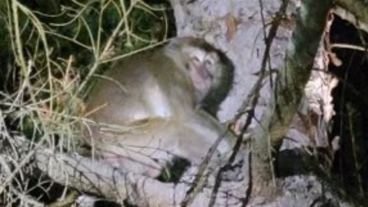 ونشرت شرطة ولاية بنسلفانيا صورة تظهر قرداً على شجرة قبالة الطريق 54 خلال الليل البارد.