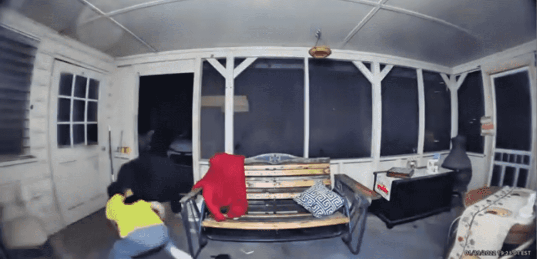 في هذا الموقف وجد رجل أمريكي نفسه، أمام دب اقتحم شرفته، فلم يجد الرجل إلا يديه العاريتين، ليصد هجمة الدب قبل أن يفتك بكلبيه الصغيرين.