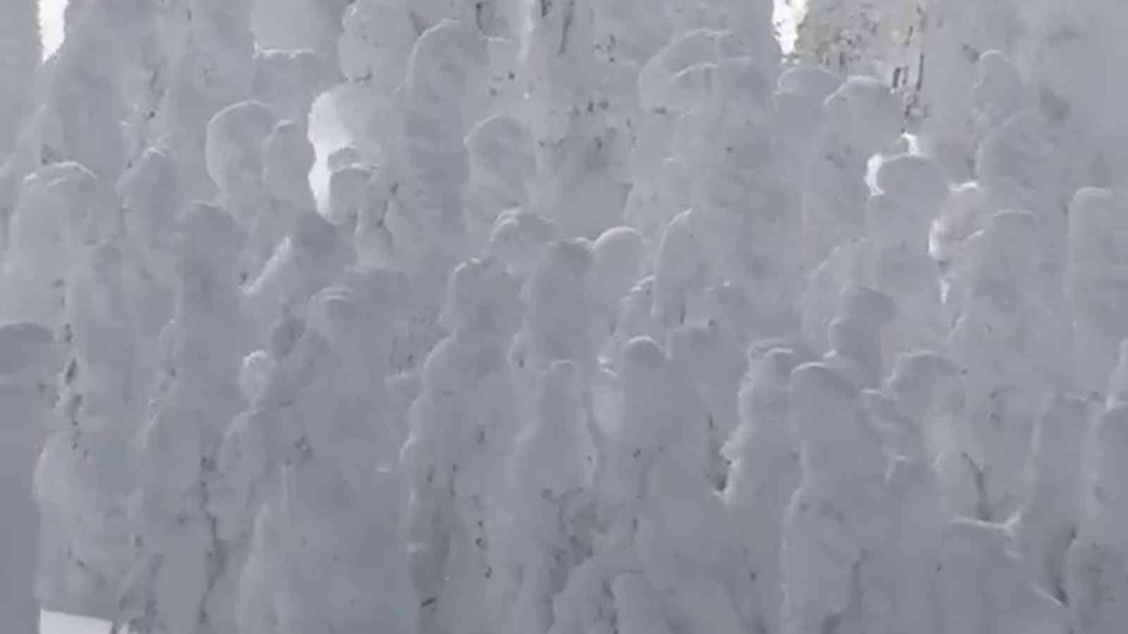التقطت عدسة طائرة من دون طيار فيديو لعدد كبير من "أشجار الصقيع"، التي اصطفت من ارتفاع 1500 متر فوق مستوى سطح البحر، في قمة جبال زاو في ناحية مقاطعة ياماغاتا.