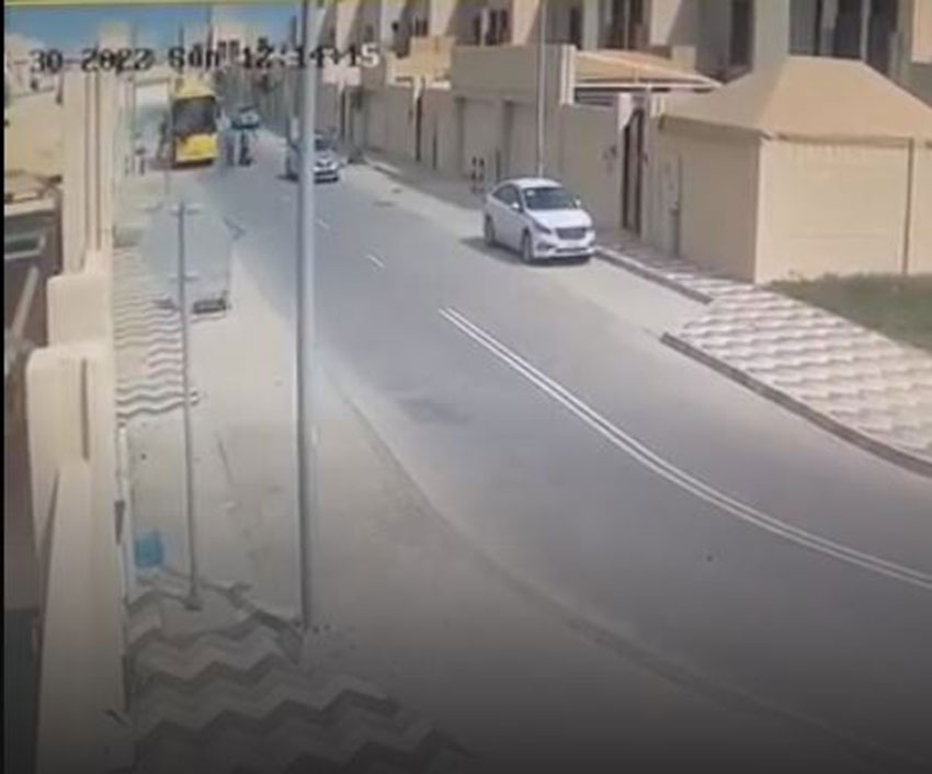 وشكف الفيديو الطفلة وهي تنزل من الجهة المقابلة لمنزلها، وأثناء عبورها من أمام الحافلة وقطع الطريق باتجاه منزلها، صدمتها مركبة متجاوزة من الجهة الجانبية.