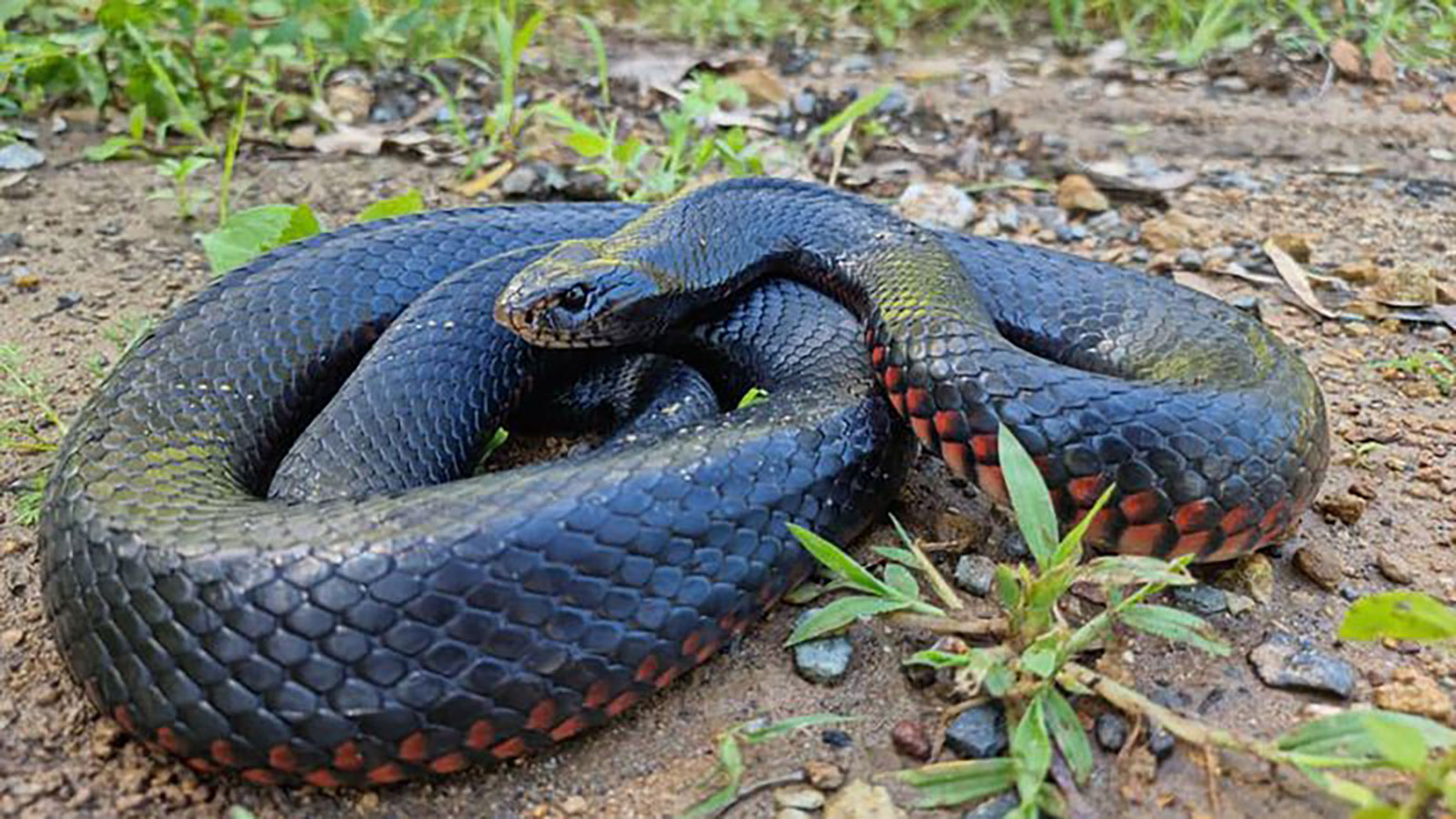 وقال Stu McKenzie ، Snake Catcher، إن فريقه استدعى للعمل في نينجي، في منطقة خليج موريتون في جنوب شرق كوينزلاند، حيث كان هناك رجل قلق بشأن ثعبان أسود أحمر اللون شوهد في فناء منزله.