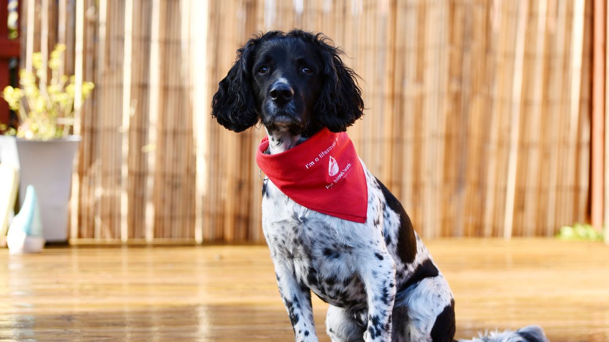 إلا أن كلبها آرني اضطر للتقاعد اليوم بعد أن بلغ التسع سنوات وهو الحد المسموح به للتبرع.