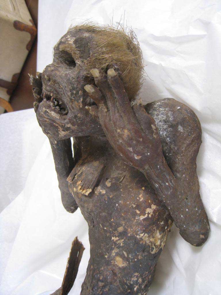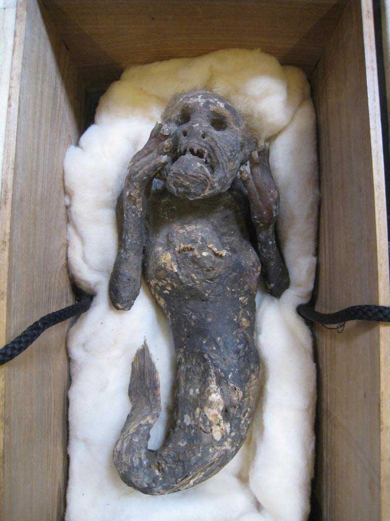ويزعم أن هذه المومياء، التي تم إنشاؤها من جذع ورأس قرد مخيط في النصف السفلي من سمكة، تم صيدها قبالة سواحل فيجي وتم شراؤها لاحقا من البحارة اليابانيين.