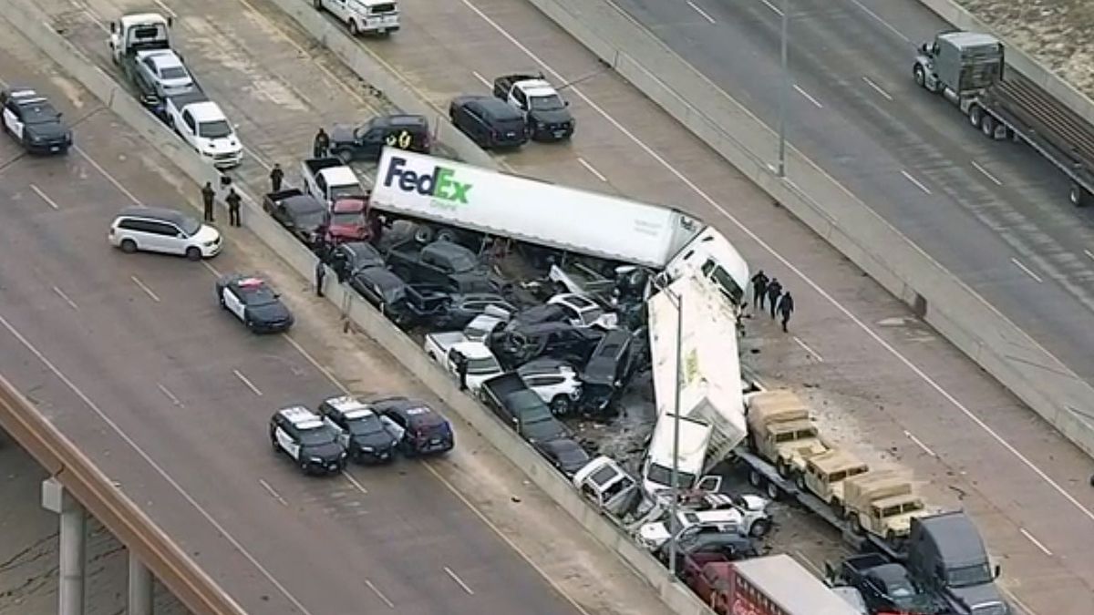 وأشارت سلطات تكساس إلى أن شاحنة البيك - أب انحرفت إلى المسار المعاكس على الطريق وصدمت الشاحنة الصغيرة ما أدى إلى اشتعال المركبتين.
